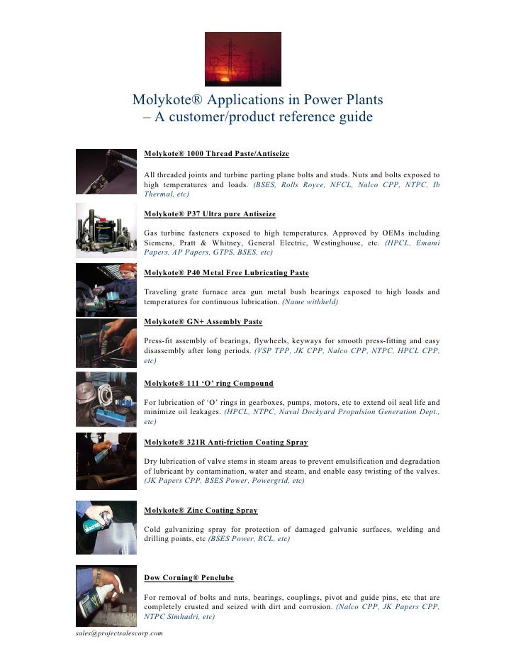 Determine the need to evacuate or isolate the area according to your local emergency plan. Self contained breathing apparatus and protective clothing should be worn in fighting large fires involving chemicals. Molykote anti friction coatings are specialty lubricants designed and engineered to help you solve difficult lubrication related problems and save energy by reducing friction and wear. Molykote metal protector plus wax and solvent based coating offering corrosion protection and commonly used for metal parts which have to be stored or transported.